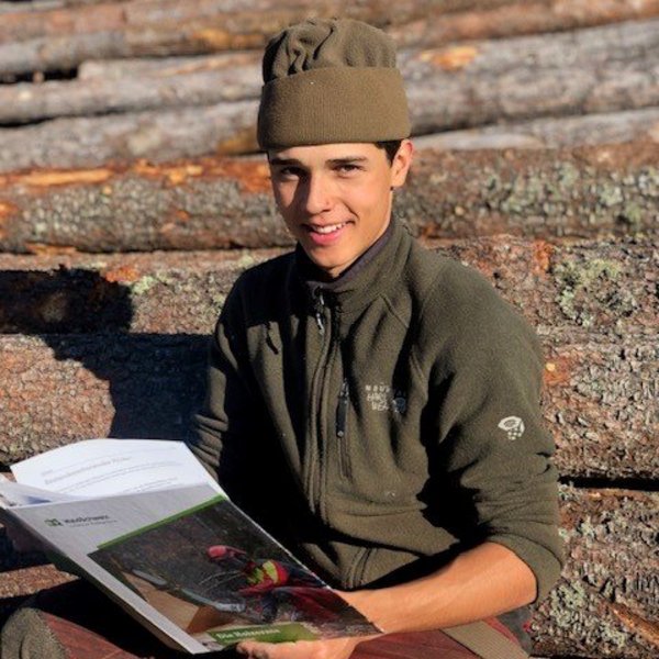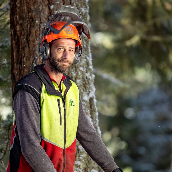 Forstwart - Forstwart seit 2009 im Betrieb – davon die letzten Jahre temporär. In der Freizeit steile Felswände erklimmen reicht ihm nicht; auch mit der Motorsäge klettert er bei Spezialholzerei Bäume hoch